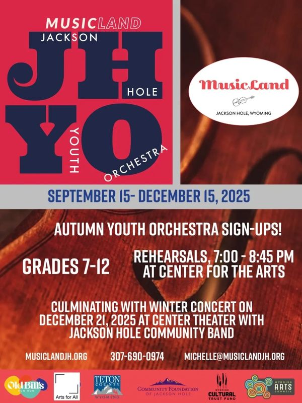 The Jackson Hole Youth Orchestra (JHYO) is the flagship artistic program spearheaded by MusicLand. JHYO encompasses every aspect of traditional orchestra participation, from auditions to public performances. Additionally, JHYO gives participants opportunity to interact with like-minded young adults, cultivate advanced repertoire, and promote dedication to instrument practice and to the complexity of music theory.
